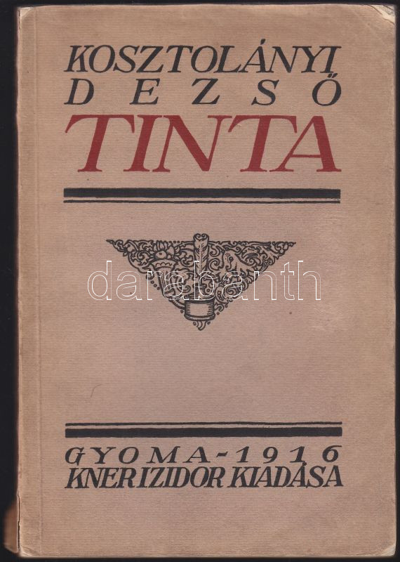 https://www.darabanth.com/en/140-Online-auction/140.0/Other-collectibles/Books-other-rarities~40022/Kosztolanyi-Dezso-Tinta-Gyoma-1916-Kner-213p-Elso-kiadasgerinc-aljan-apro-serulesse~II393406
