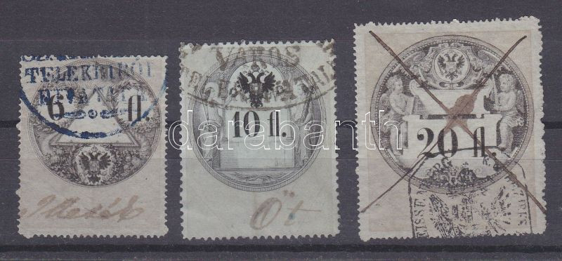 1859 Okirati illetékbélyeg 6Ft, 10Ft, 20Ft