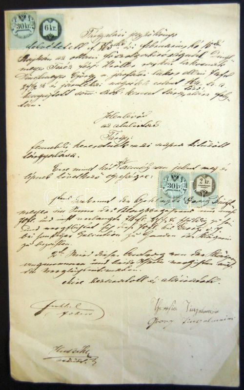 https://www.darabanth.com/en/140-Online-auction/140.0/Other-collectibles/Document-Stamps~40003/1865-Teljes-irat-2kr-Hirdetvenybelyeg-kisegito-felhasznalasaval-plus-6kr-plus-2-x-30kr~II411679
