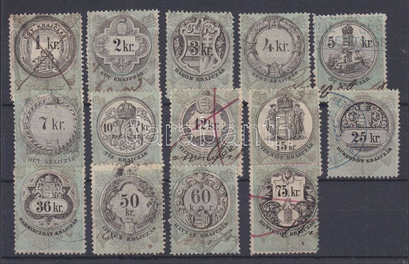 https://www.darabanth.com/en/140-Online-auction/140.0/Other-collectibles/Document-Stamps~40003/1868-Hatarorvidek-illetekbelyegek-14-klf-ertek~II411661