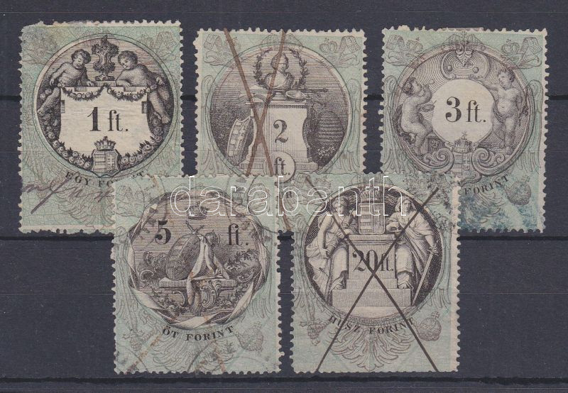 https://www.darabanth.com/en/140-Online-auction/140.0/Other-collectibles/Document-Stamps~40003/1868-Hatarorvidek-illetekbelyegek-1Ft-2Ft-3Ft-5Ft-20Ft-kisebb-hibak~II411662