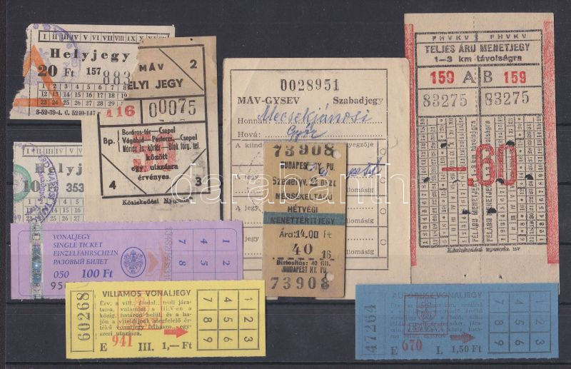 9 db klf régi magyar közlekedési jegy