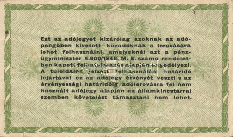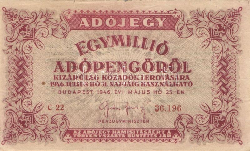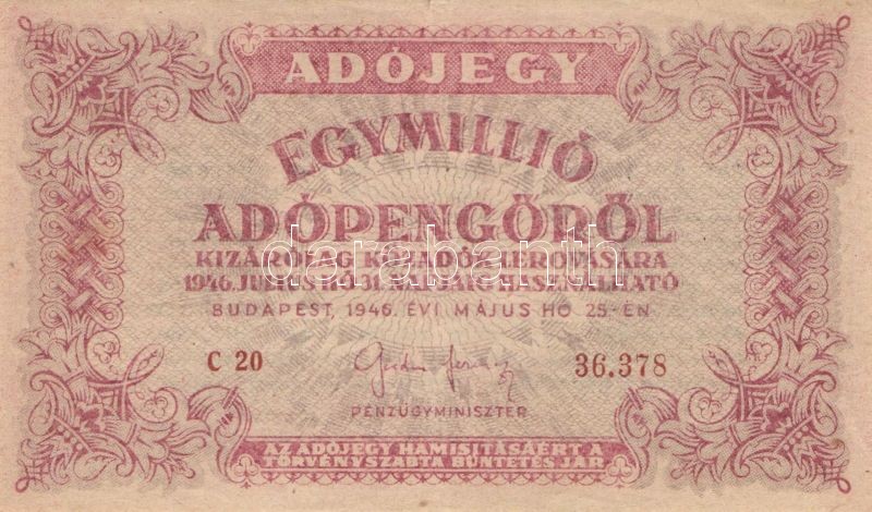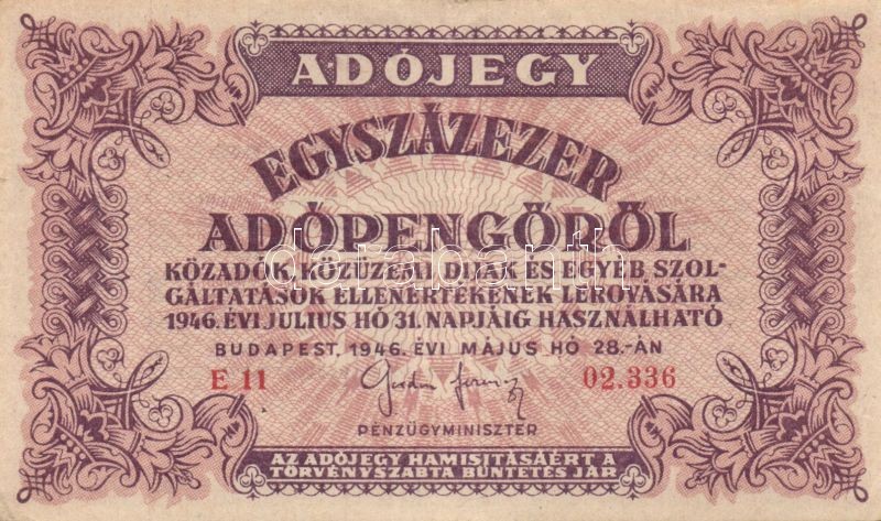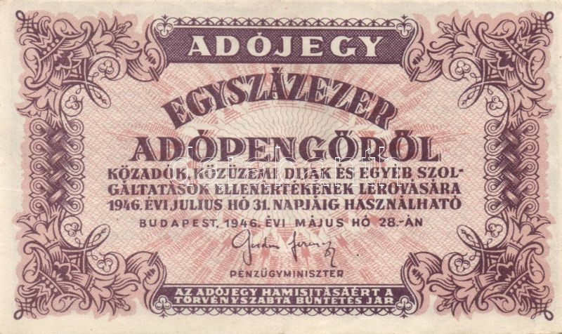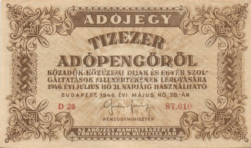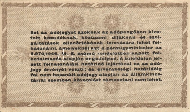 Description: 1946. 10.000AP + 50.000Ap (2x) sorszám nélkül és sorszámozva + 100.000AP (2x) sorszám nélkül és sorszámozva + 500.000AP (3x) + 1.000.000AP (3x) sorszám nélkül és sorszámozva illetve vízjellel! T:I,II,III