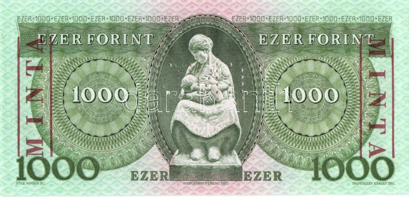 1993. 1000Ft "MINTA" perforációval és felülnyomással "D 00000350" sorozatszámmal T:I