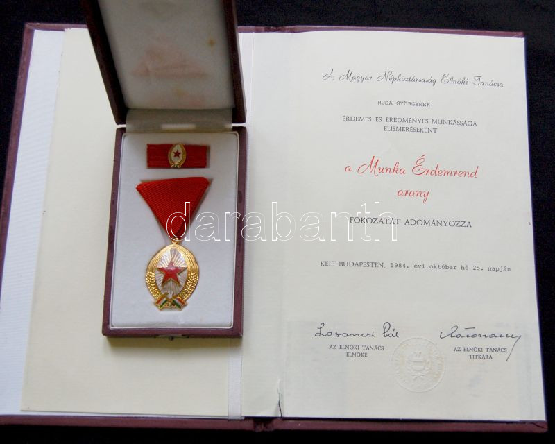 https://www.darabanth.com/en/141-Online-auction/141.0/Numismatics/Hungarian-commemorative-medals-plaques-badges~10010/1984-A-Munka-Erdemrend-arany-fokozata-adomanyozoi-oklevellel-Losonczi-Pal-alairasaval-Dr~II416229
