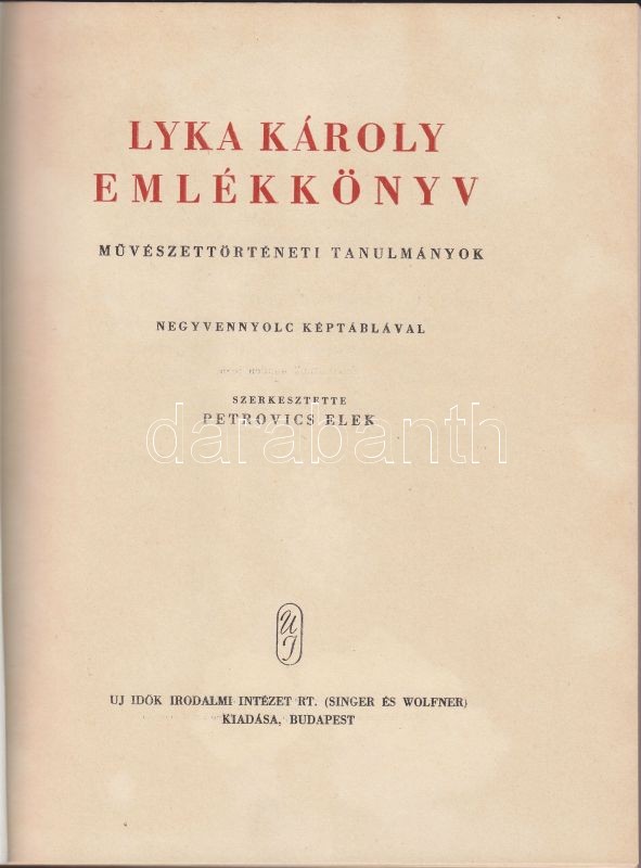 https://www.darabanth.com/en/141-Online-auction/141.0/Other-collectibles/Books-Architecture-Art~20019/Lyka-Karoly-emlekkonyv-Muveszettorteneti-tanulmanyok-48-keptablaval-Szerk-Petrovics-E~II419963