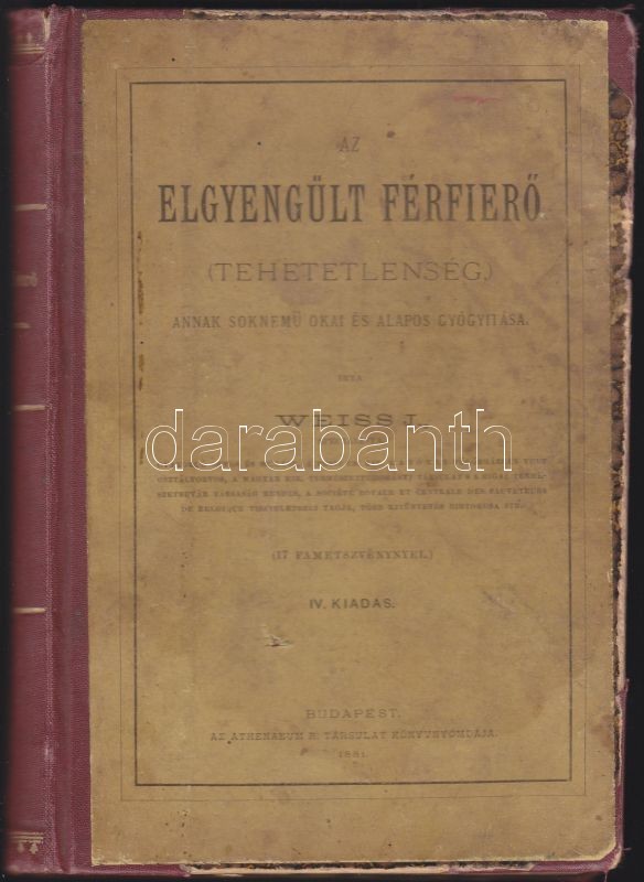 https://www.darabanth.com/en/141-Online-auction/141.0/Other-collectibles/Books-Medical-and-pharmaceutical-books~20020/Weiss-J-Az-elgyengult-ferfiero--Tehetetlenseg-67-fametszvennyel-Bp-1881-Szerzoi-kiadas~II419987