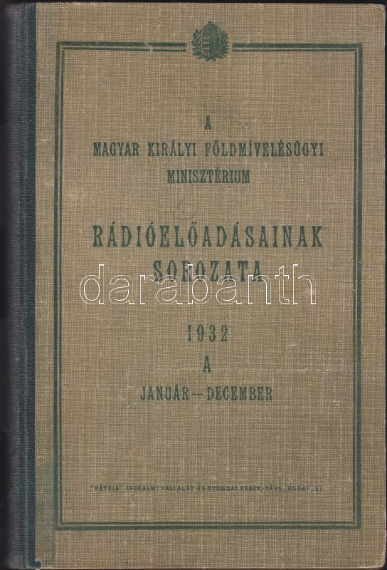 1932 A Magyar Királyi Földművelésügyi Minisztérium Rádióelőadásainak s... https://www.darabanth.com/en/141-Online-auction/141.0/Other-collectibles/Books-Other-rarities~20021/1932-A-Magyar-Kiralyi-Foldmuvelesugyi-Miniszterium-Radioeloadasainak-sorozata-januartol-~II418017