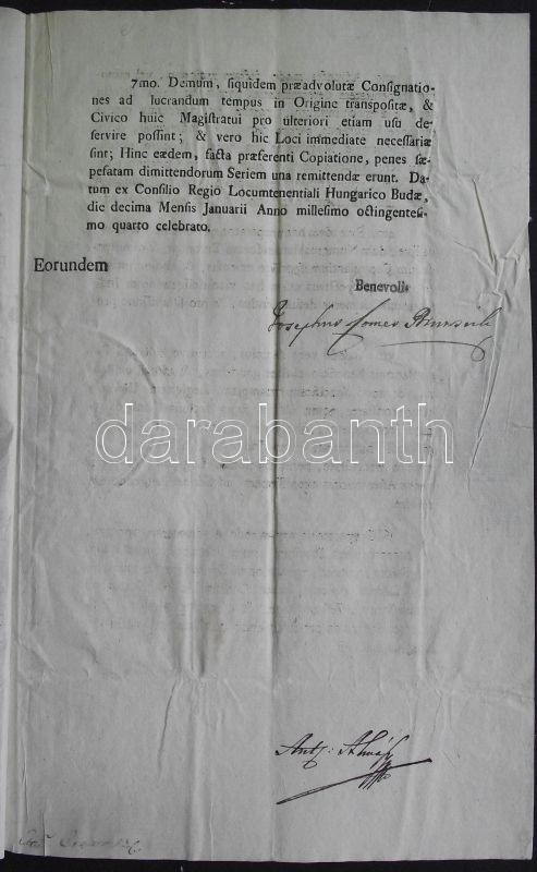 1804 Helytartótanácsi levél gr. Brunswick József országbíró és gróf Almásy Antal saját kezű aláírásával / Ex offo letter of the Governing Council with autograph signature of Joseph Brunswick and count Antonius Almasy