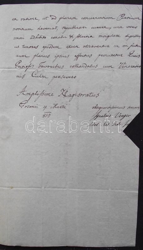 1815 Ex offo levél Venger Ignác a poszosnyi tankerület tanfelügyelőjétől saját kezű aláírásával és címeres viaszpecséttel / Official letter from the scholar district of Bratislava