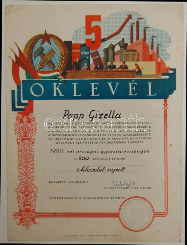 https://www.darabanth.com/en/141-Online-auction/141.0/Other-collectibles/Printed-Materials~20016/1950-Rakosi-cimeres-oklevel~II417707