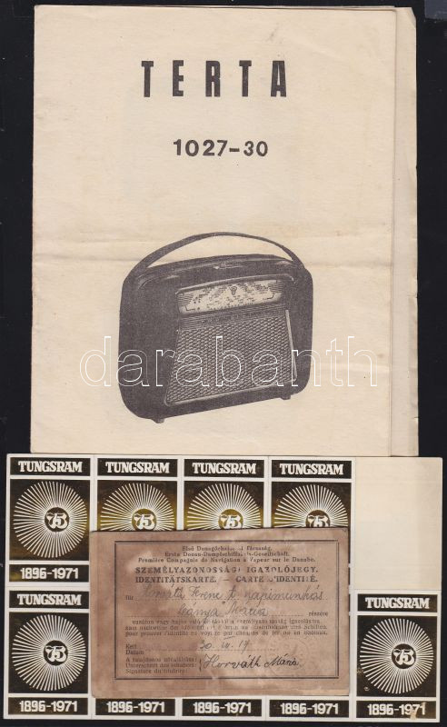 Kis nyomtatvány tétel: Tungsram matrica, Terta 1027-30 típusú táskarádió használati utasítása. Gőzhajózási személyazonossági igazolójegy