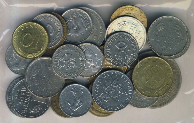 Dánia 1974. 5K + Franciaország 1965. 1/2Fr + 1975-77. 1Fr (2x) + Olaszország 1979. 200L + NSZK 1949-88. 10Pf (12x) + 1950-83. 50Pf (8x) + 1971-88. 1M (7x) + 1969. 2M T:2,3