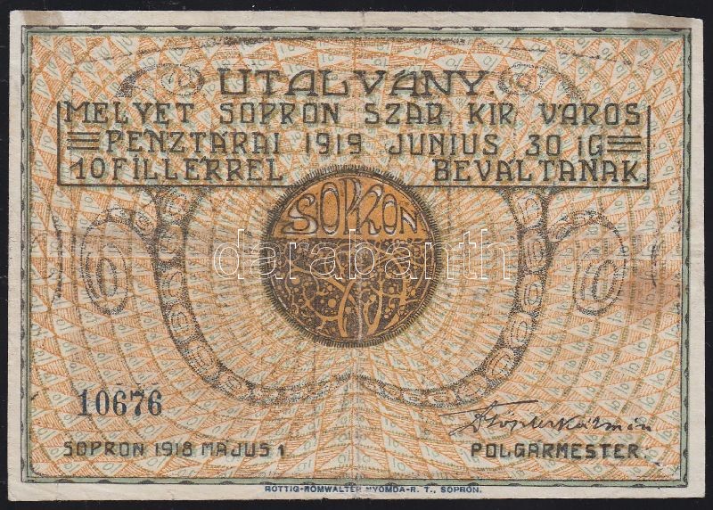 https://www.darabanth.com/en/142-Online-auction/142.0/Numismatics/Hungarian-and-foreign-emergency-notes-and-coins-tokens~1500007/Sopron-1918-10f-utalvany-TIII-f~II411465