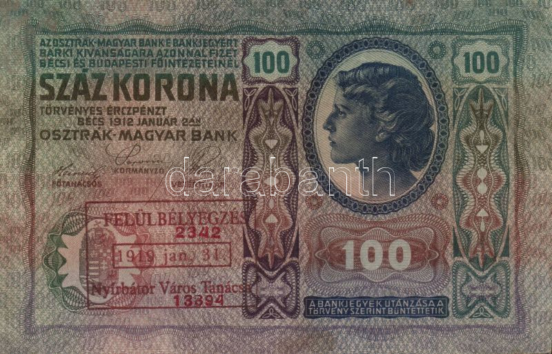 https://www.darabanth.com/en/142-Online-auction/142.0/Numismatics/Hungarian-banknotes~1500008/1902-1000K-plus-1912-100K-mindketto-Felulbelyegzes-1919-jan31-Nyirbator-Varos-Tanacsa-vC3~II420274