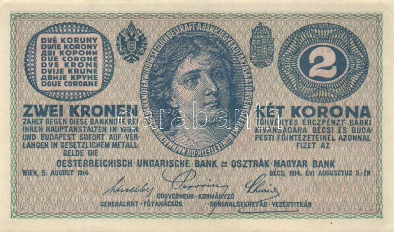 https://www.darabanth.com/en/142-Online-auction/142.0/Numismatics/Hungarian-banknotes~1500008/1914-2K-C-sorozat-TI-kis-sarokhajlas~II421722