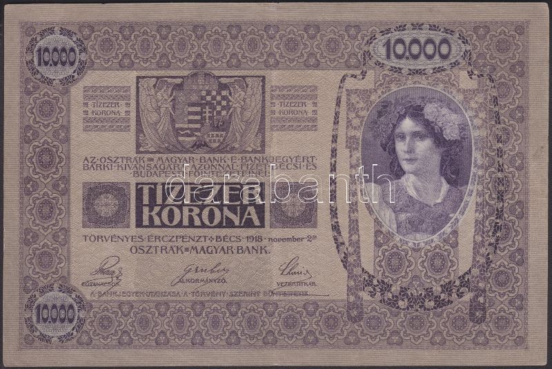 https://www.darabanth.com/en/142-Online-auction/142.0/Numismatics/Hungarian-banknotes~1500008/1918-10000K-belyegzes-nelkul-TIII-kis-szakadas-R~II421620