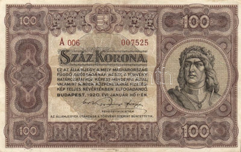 https://www.darabanth.com/en/142-Online-auction/142.0/Numismatics/Hungarian-banknotes~1500008/1920-100K-Orell-Fussli-Zurich-szamozas-szine-eltero-TII-IIIplus~II421830