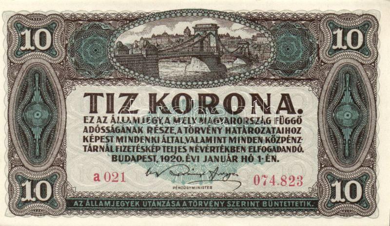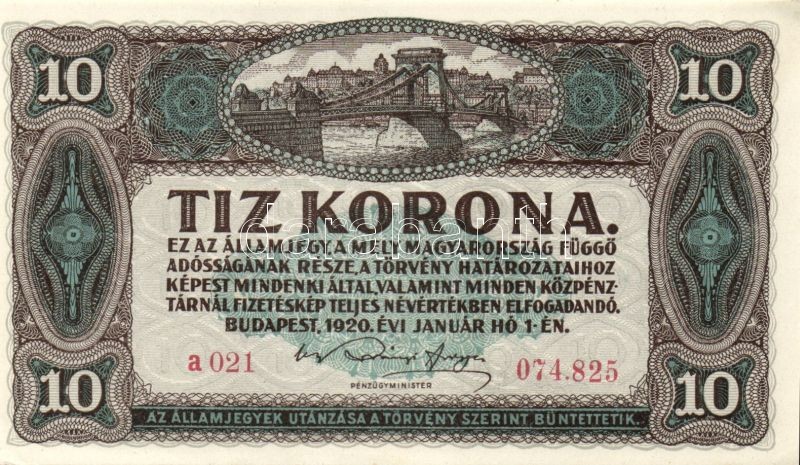 1920. 10K (2x) egymás utáni sorszámmal T:I