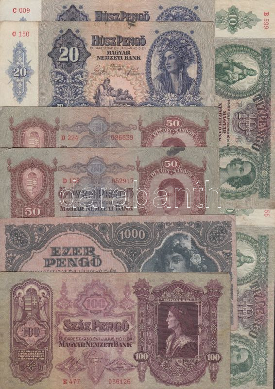 https://www.darabanth.com/en/142-Online-auction/142.0/Numismatics/Hungarian-banknotes~1500008/1930-45-10P-2x-20P2x-50P-2x-100P-2x-1000P-TIIIplus-III~II423288