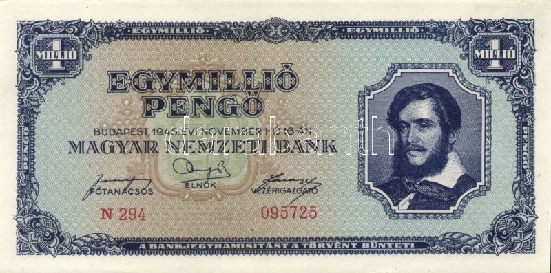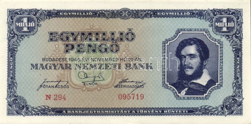 1945. 1.000.000P (2x) egymáshoz közeli sorszámúak T:I