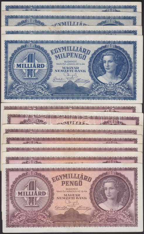 1946. 1.000.000.000P (7x) többféle színváltozat + 1.000.000.000MP (4x) T.II,III
