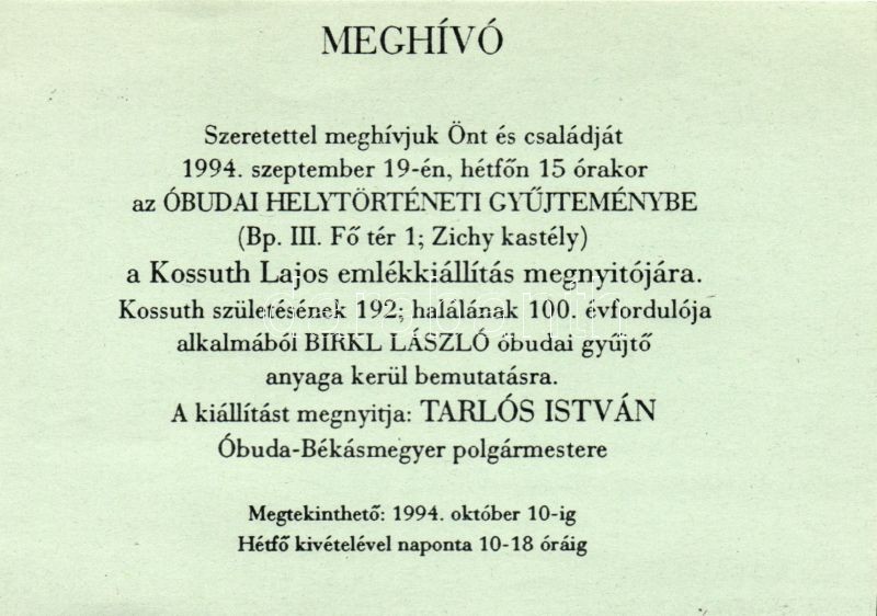 1946. 10.000.000P "Forradalmaink pénzei kiállítás a Szigetvári várban 1964..." felülbélyegzéssel + 100.000.000P + 1.000.000.000MP mindkettő "Forradalmi pénzkiállítás-ki mit gyűjt Dorog 1967..." felülbélyegzéssel + 100.000MP + 1.000.000.000MP mindkettő "Papír- és fémpénzkiállítás Szolnokon...." felülbélyegzéssel + 5Ft emigrációs Kossuth bankó kemény papírra nyomtatva hátlapon "Forradalmaink pénzei..."felülbélyegzéssel + Meghívó a Kossuth Lajos emlékkiállítás megnyitójára T:I,II,III
