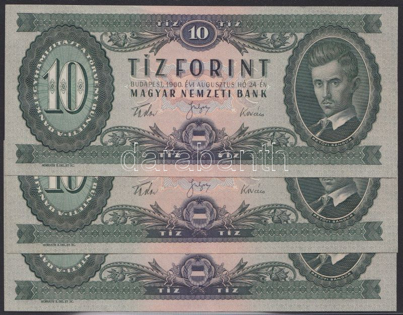 1960. 10Ft (3x) egymás utáni sorszámmal T:II+ (egyszer hajtva, törve nem)