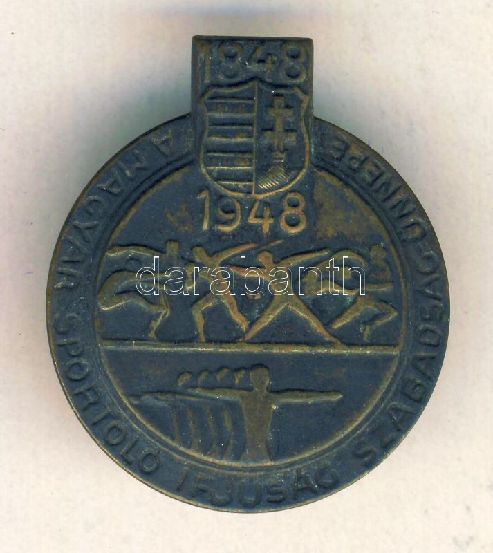https://www.darabanth.com/en/142-Online-auction/142.0/Numismatics/Hungarian-commemorative-medals-plaques-badges~1500010/1848-1948-A-Magyar-Sportolo-Ifjusag-Szabadsag-Unnepe-kituzo-T2~II420827
