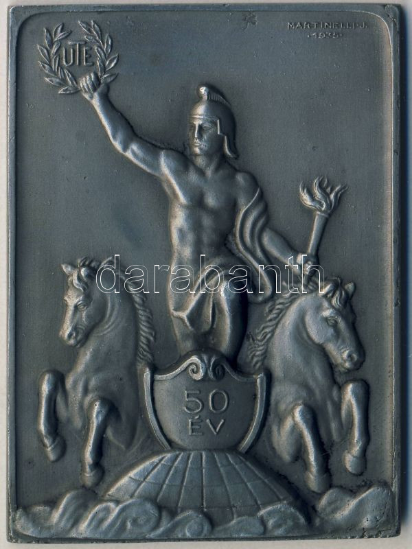 1935. "UTE-50 év" szögletes hadifém emlékplakett 74x53mm Szign.:Martinelli J. T:2
