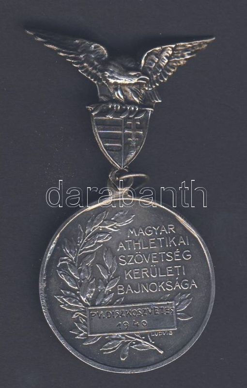 1940. "Magyar Athlétikai Szövetség Kerületi Bajnoksága" díjérme turul jelvénnyel Remecz József diszkoszvetőbajnok részére T:1