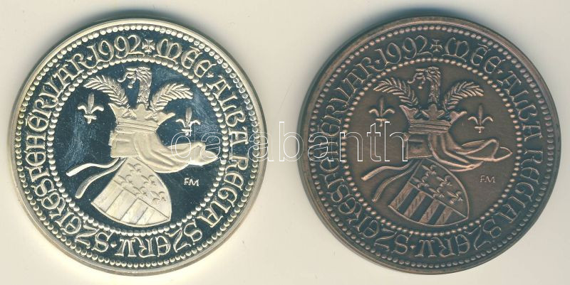 1992. "MÉE Székesfehérvár-Károly Róbert" Ag bicolor 34,24g és Br emlékérem pár T:PP,BU