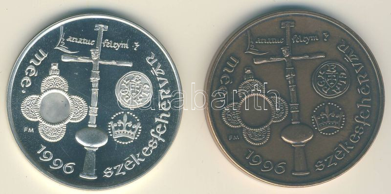 1996. "MÉE Székesfehérvár-III.Béla" Ag 36,83g és Br emlékérem pár T:PP...