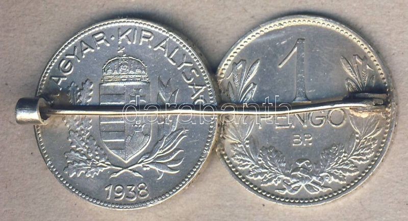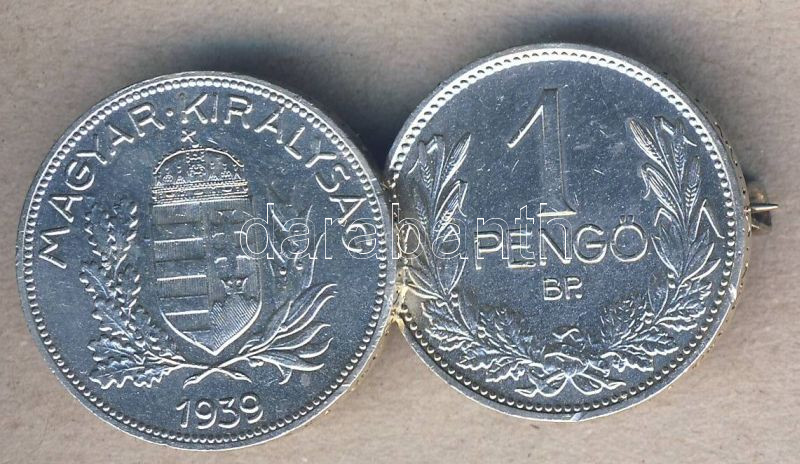1938-1939. 1P (2x) Ag T:2 összeolvasztva a két pénzérme és kitűzőként ...