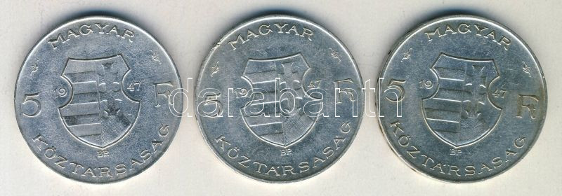 1947. 5Ft Ag (3x) "Kossuth" T:2-,3+ ph.