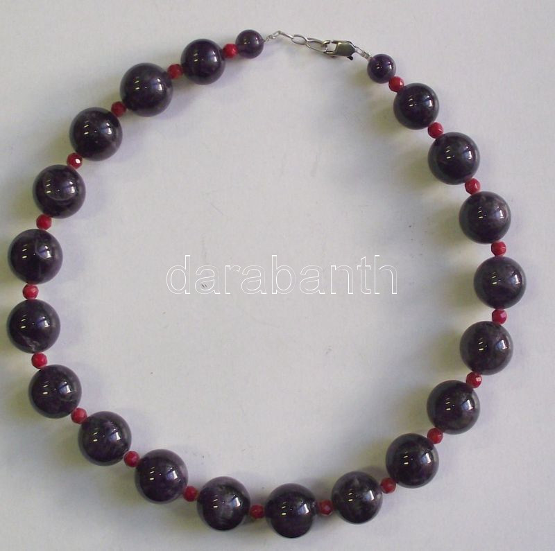 Nagy ametiszt (d:18 mm) és fazettált korall lánc ezüst (Ag) szerelékke...
