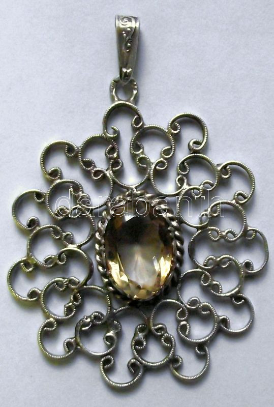 Nagyon szép cirádás, kővel díszített ezüst (Ag) medál 6,2g