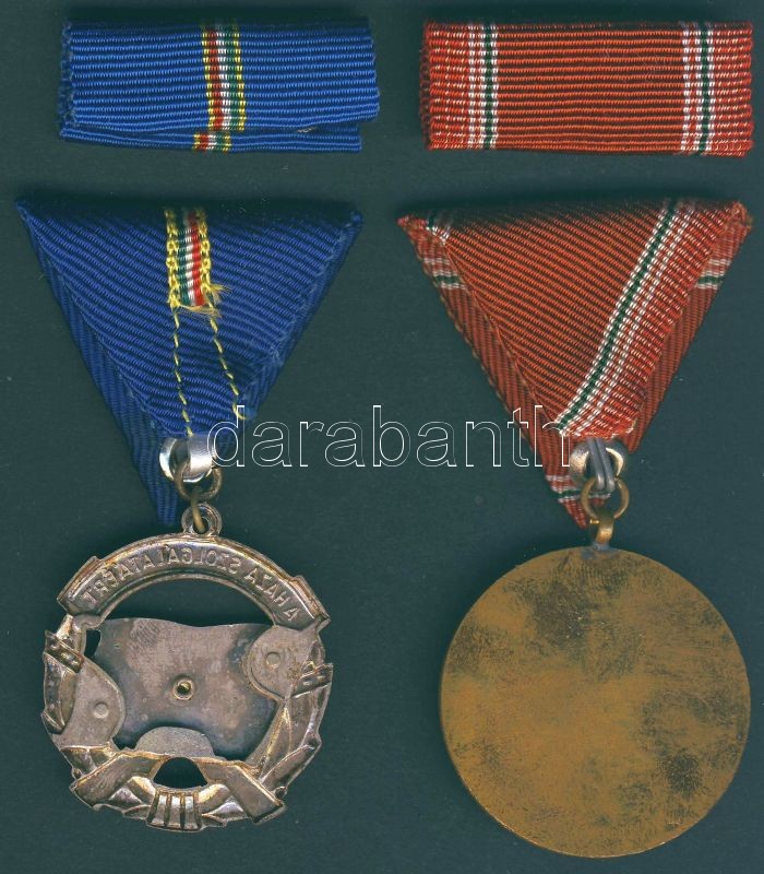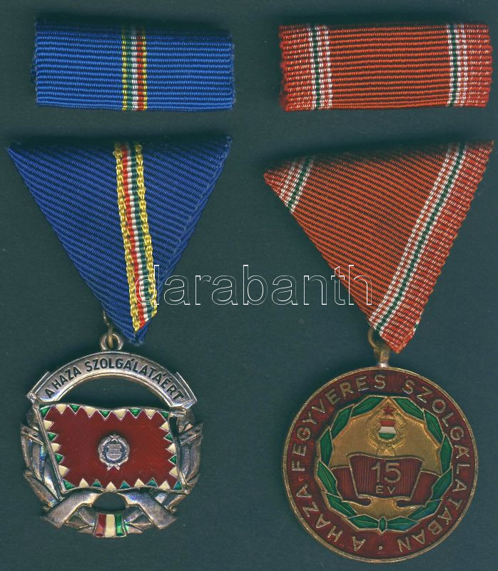 Description: A Haza Szolgálatáért Érdemérem ezüst fokozata, szalagsávval eredeti dísztokban T:1/2 + "A Haza Fegyveres Szolgálatában-15 év" szalagsávval eredeti dísztokban T:1