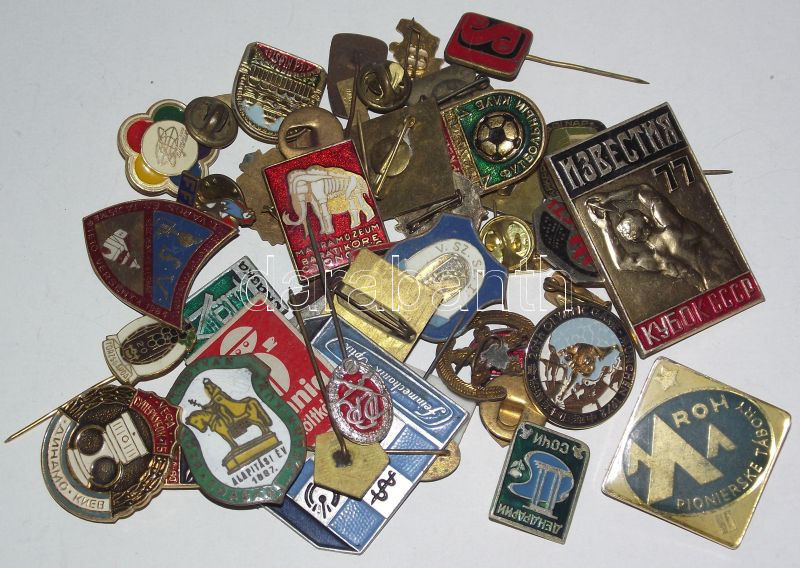 Kis vegyes jelvény, kitűző tétel, többnyire külföldi és sport témájúak, közöttük zománcozott darabok is T:vegyes