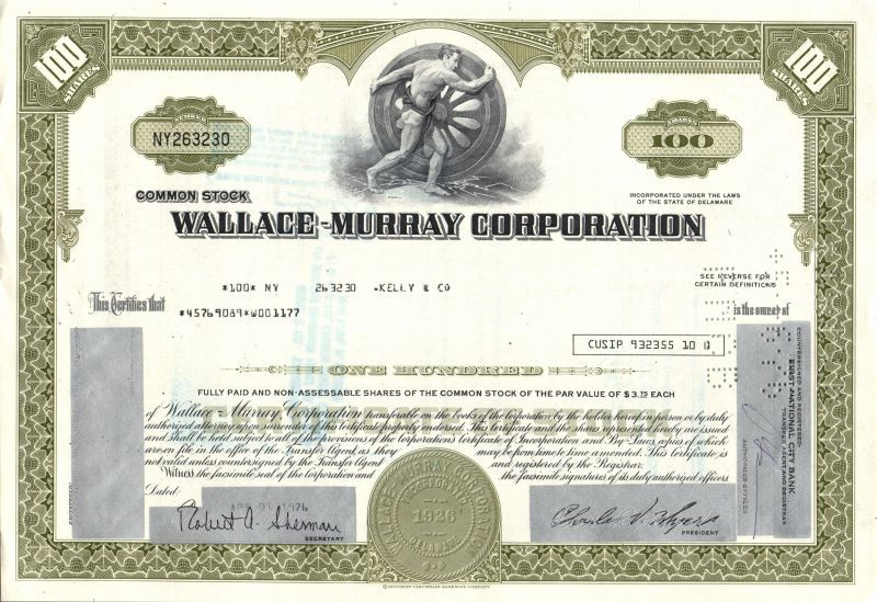 USA / California 1976. Wallace-Murray Corporation autóipari alkatrészek és felszerelések vállalatának részvénye T:I-
