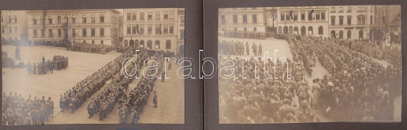 1916 I. világháborús katonai fotóalbum 26 db képpel, közte Ferenc József tiszteket esket halála előtt 3 héttel. (Egyike lehet a róla készült utolsó fotóknak) / WW. I. album with 26 military photos among them one photo of Franz Joseph holding a swearing ceremony on 2 10 16, only 20 days before his death. This must be one of his last photos