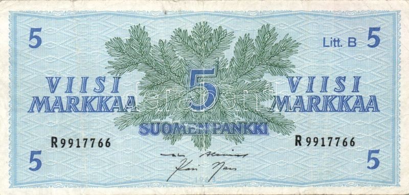 Finnország 1963. 1M + 5M T:I,III + Jugoszlávia 1990. 200D T:III
