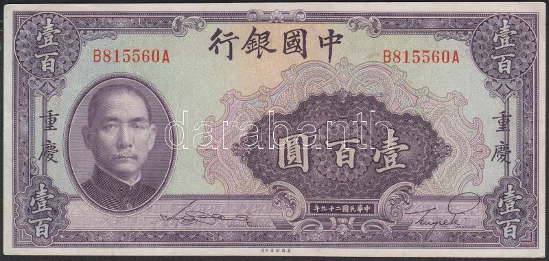 https://www.darabanth.com/en/143-Online-auction/143.0/Numismatics/Foreign-banknotes~900105/Kinai-Koztarsasag-1940-100Y-TI~II413273