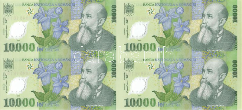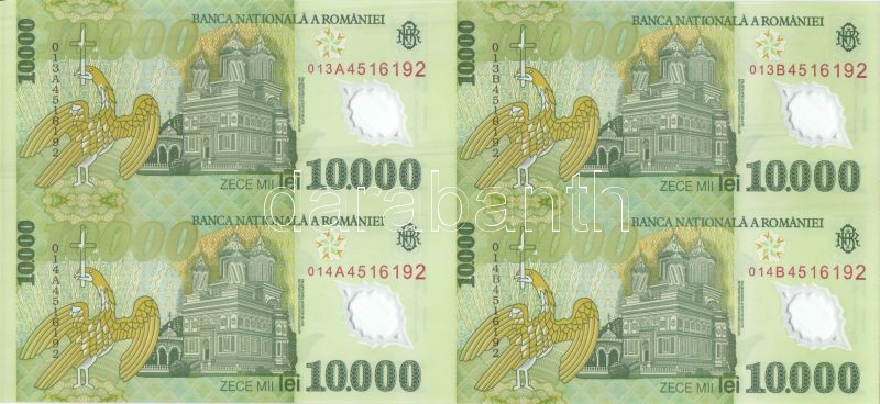 Románia 2001. 10.000L összefüggő vágatlan 4-es tömbben számozott(2803....