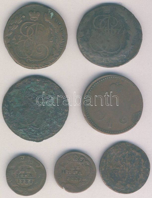 https://www.darabanth.com/en/143-Online-auction/143.0/Numismatics/Foreign-coins~900106/Cari-Oroszorszag-1700-as-evek-7db-kulonbozo-kopejka-es-denga-T3-4~II424135