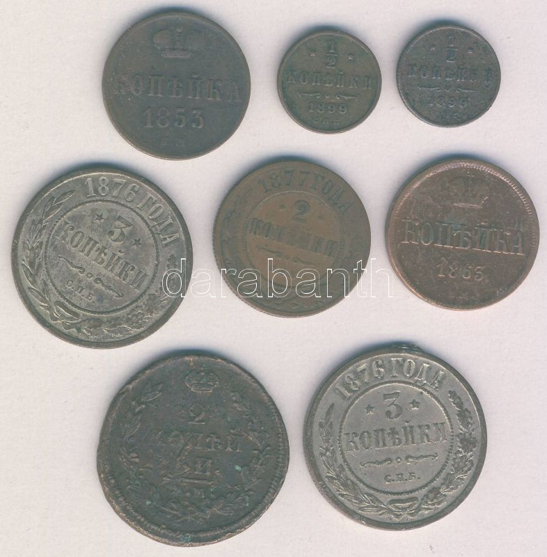 Cári Oroszország 1822. 2k + 1853. 1k + 1863. 1k + 1876. 3k (2x) + 1877. 2k + 1899. 1/2k (2x) T:3 ph. fny.