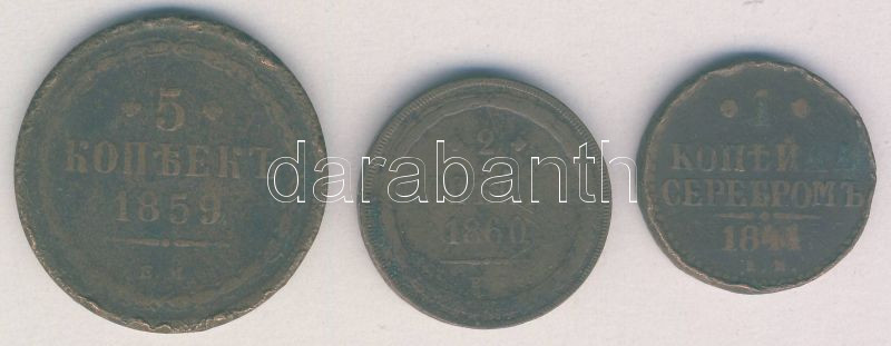 Cári Oroszország 1844. 1k + 1860. 2k + 1859. 5k T:3,3- ph.