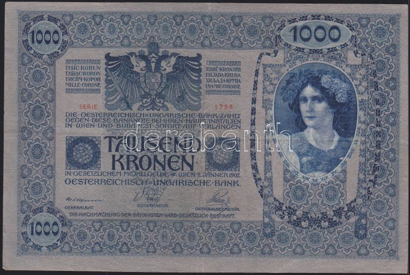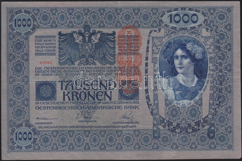 https://www.darabanth.com/en/143-Online-auction/143.0/Numismatics/Hungarian-Banknotes~900101/1902-1000K-fuggoleges-Deutschosterreich-felulnyomassal-TIIIplusIII~II397052