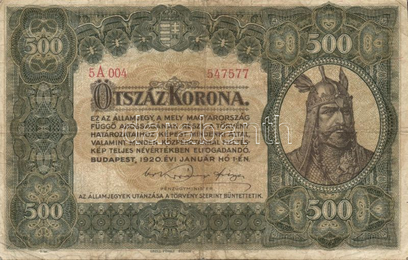 https://www.darabanth.com/en/143-Online-auction/143.0/Numismatics/Hungarian-Banknotes~900101/1920-500K-Orell-Fussli-Zurich-TIVplus~II398717