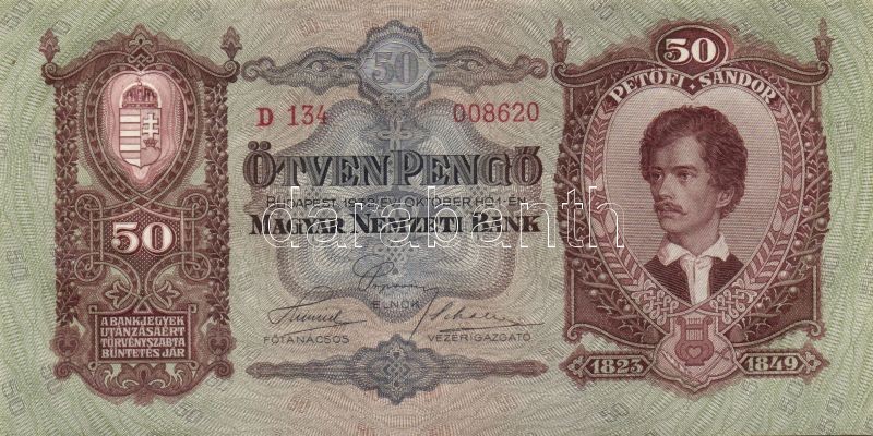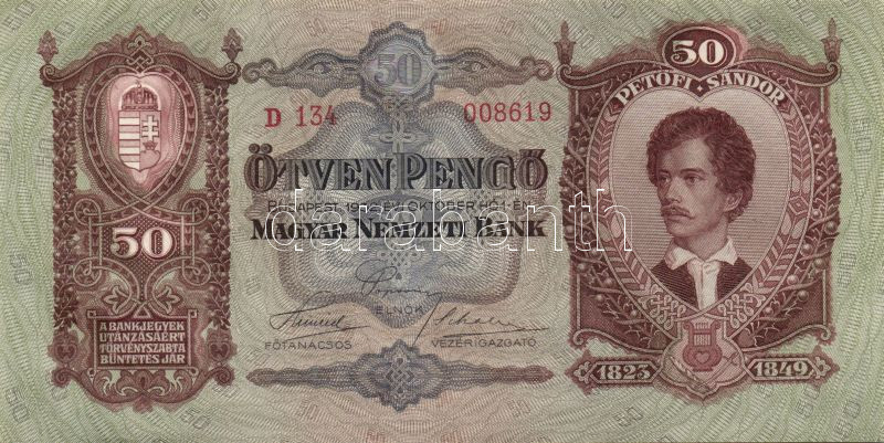 1932. 50P (2x) egymásutáni sorszámmal T:I,I-